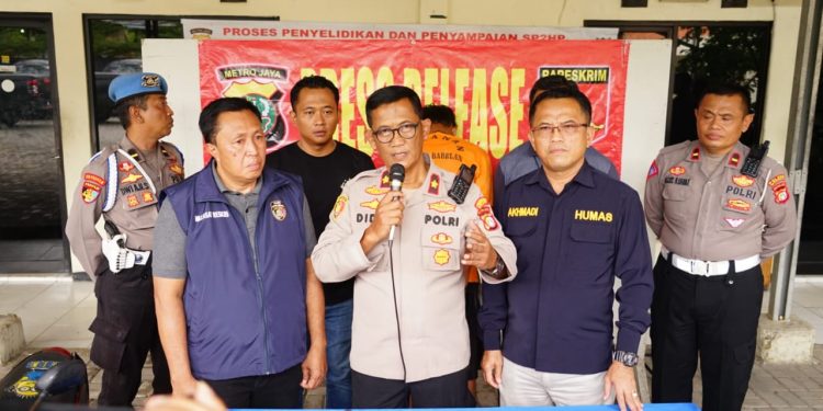 Bekasi – Kapolsek Babelan Kompol Didik Prijosusilo Memimpin Konferensi Pres Pengungkapan Kasus Percobaan Pencurian (pemuda hendak mengambil handphone anak-anak yang bermain di pinggir jalan) Yang Sempat Viral Di Kp. Irian, Kelurahan Kebalen, Babelan, Kabupaten Bekasi. Jumat (8/3/2024).
