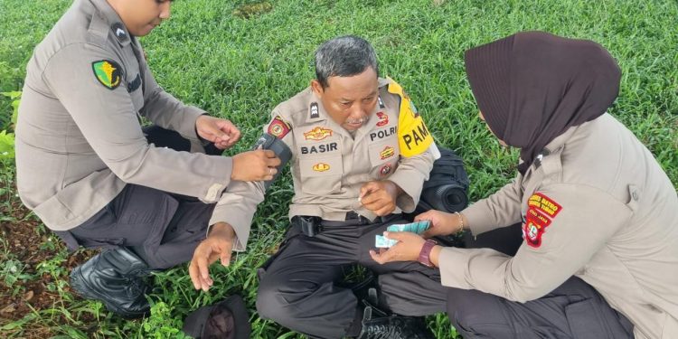 Team Kesehatan Lapangan Sidokkes Polres Metro Jakarta Timur melakukan pengecekan, dan pemeriksaan kesehatan personel pengamanan pemilu 2024, di di setiap Tempat Pemungutan Suara (TPS) yang berada di Wilayah Hukum Polres Jakarta Timur, Rabu 14 Februari 2024.