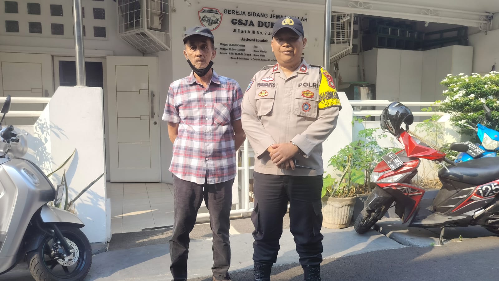 Jakarta Pusat – Personil gabungan TNI – Polri dibantu Pokdar Kamtibmas melaksanakan kegiatan pengamanan Ibadah Kenaikan Isa Al Masih di Gereja GSJA di Jl. Duri A III No. 7 RT 03/02 kelurahan Duri Pulo Gambir Jakarta Pusat. Kamis (9/5/2024).