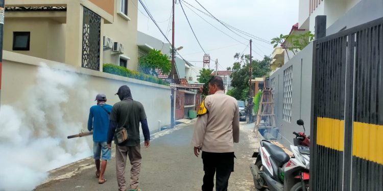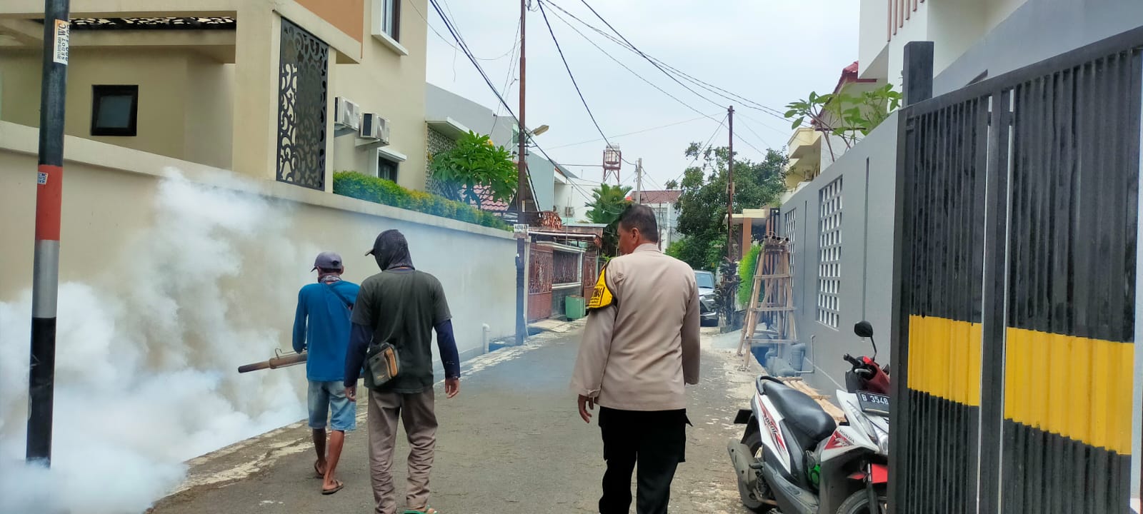 Dalam rangka kegiatan fogging, Bhabinkamtibmas Kel. Jakasampurna Aiptu Sulistanto turut hadir dan bergabung bersama pengurus RW 06A Jakasampurna Bpk H. Lilfi monitoring kegiatan fogging atau pengasapan di Perumahan Jaka permai RW.06A kel. Jakasampurna Kec Bekasi Barat Kota Bekasi pada senin (25/3/2024).