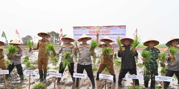 Kegiatan Panen dan Tanam Padi Polri Presisi Untuk Negeri itu merupakan bagian dari Gerakan Nasional mengurangi dampak yang mungkin terjadi akibat kondisi cuaca ekstrem yang disebabkan oleh fenomena El Nino, Selasa (03/10/2023).