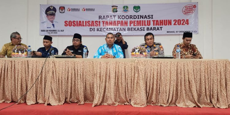 Jakarta – AKP Partono Wakapolsek Bekasi Kota, menghadiri rapat koordinasi sosialisasi tahapan pemilu 2024 yang diselenggarakan di Graha Puri, Kecamatan Bekasi Barat, pada hari Kamis, 7 Desember 2023.