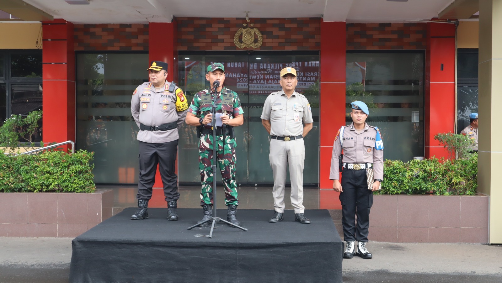 Jakarta Selatan- Personel gabungan dari TNI, Polri, dan Pemerintahan Daerah Walikota Administrasi Jakarta Selatan bersatu dalam apel kesiapan Operasi Mantap Praja Jaya 2024 di Lapangan Mapolres Metro Jakarta Selatan, Senin ( 25/11/2024 ). Kegiatan ini bertujuan memastikan kelancaran pengamanan Pilkada Serentak 2024 yang akan berlangsung Rabu, 27 November 2024.
