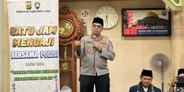 Jakarta – Ditbinmas Polda Metro Jaya menggelar program ‘Satu Jam Mengaji Bersama Polisi’ bertempat di Masjid Al – Muhajirin Jln. Karet Pasar Baru Barat I, Tanah Abang Jakarta Pusat. Jumat (2/8/2024) malam.